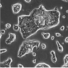 如果細(xì)胞密度達(dá)80%-90%,即可進(jìn)行傳代培養(yǎng)。1. 棄去培養(yǎng)上清,用不含鈣、鎂離子的PBS潤(rùn)洗細(xì)胞1-2次。2. 加2ml消化液(0.25%Trypsin-0.53mM EDTA)于培養(yǎng)瓶中,置于37℃培養(yǎng)箱中消化1-2分鐘,然后在顯微鏡下觀察細(xì)胞消化情況,若細(xì)胞大部分變圓并脫落,迅速拿回操作臺(tái),輕敲幾下培養(yǎng)瓶后加少量培養(yǎng)基終止消化。3. 按6-8ml/瓶補(bǔ)加培養(yǎng)基,輕輕打勻后吸出,在1000RPM條件下離心4分鐘,棄去上清液,補(bǔ)加1-2mL培養(yǎng)液后吹勻。4. 將細(xì)胞懸液按1:2到1:5的比例分到新的含8ml培養(yǎng)基的新皿中或者瓶中 |