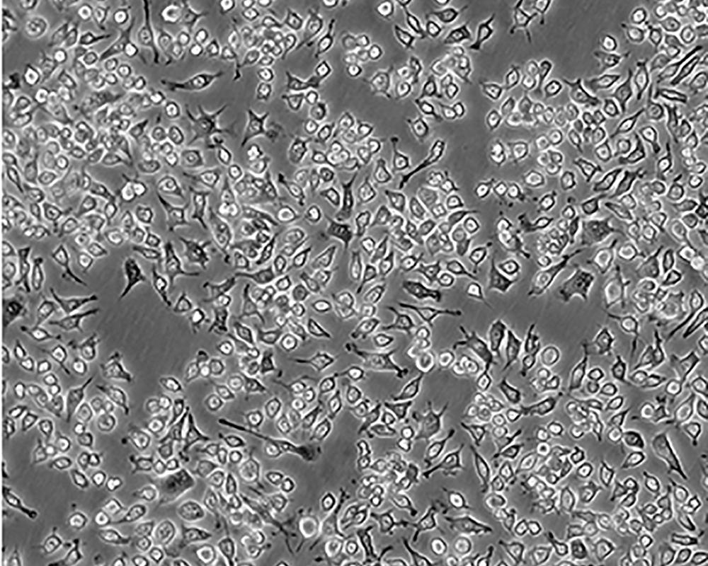 如果細胞密度達80%-90%,即可進行傳代培養。1. 棄去培養上清,用不含鈣、鎂離子的PBS潤洗細胞1-2次。2. 加2ml消化液(0.25%Trypsin-0.53mM EDTA)于培養瓶中,置于37℃培養箱中消化1-2分鐘,然后在顯微鏡下觀察細胞消化情況,若細胞大部分變圓并脫落,迅速拿回操作臺,輕敲幾下培養瓶后加少量培養基終止消化。3. 按6-8ml/瓶補加培養基,輕輕打勻后吸出,在1000RPM條件下離心4分鐘,棄去上清液,補加1-2mL培養液后吹勻。4. 將細胞懸液按1:2到1:5的比例分到新的含8ml培養基的新皿中或者瓶中 |