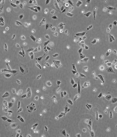 如果細胞密度達80%-90%,即可進行傳代培養。1. 棄去培養上清,用不含鈣、鎂離子的PBS潤洗細胞1-2次。2. 加2ml消化液(0.25%Trypsin-0.53mM EDTA)于培養瓶中,置于37℃培養箱中消化1-2分鐘,然后在顯微鏡下觀察細胞消化情況,若細胞大部分變圓并脫落,迅速拿回操作臺,輕敲幾下培養瓶后加少量培養基終止消化。3. 按6-8ml/瓶補加培養基,輕輕打勻后吸出,在1000RPM條件下離心4分鐘,棄去上清液,補加1-2mL培養液后吹勻。4. 將細胞懸液按1:2到1:5的比例分到新的含8ml培養基的新皿中或者瓶中 |